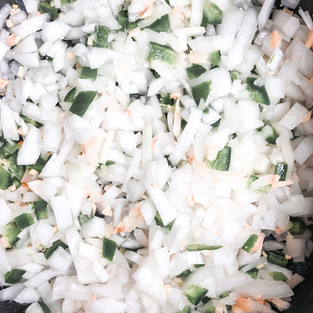 1. In large pot, place coconut oil, onion, jalapeño, ginger, garlic & salt. Place stove to medium-high heat & cook for about 5 minutes, stirring occasionally.