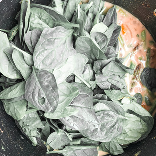 4. After 5 - 10 minutes, place and stir the spinach into the pot. Stir until the spinach is wilted, which takes about 30 seconds.