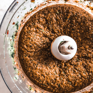 2. To the liquid mixture add in the black beans, garbanzo beans and all seasonings -- mix on high in the food processor until all the ingredients are combined.