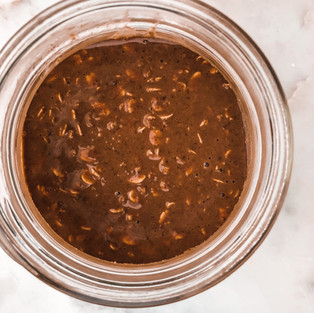 1. Place oats, plant-based milk or water, almond butter, flaxseeds, cacao powder,coconut sugar and vanilla extract in airtight container. Mix together with a spoon until well combined.